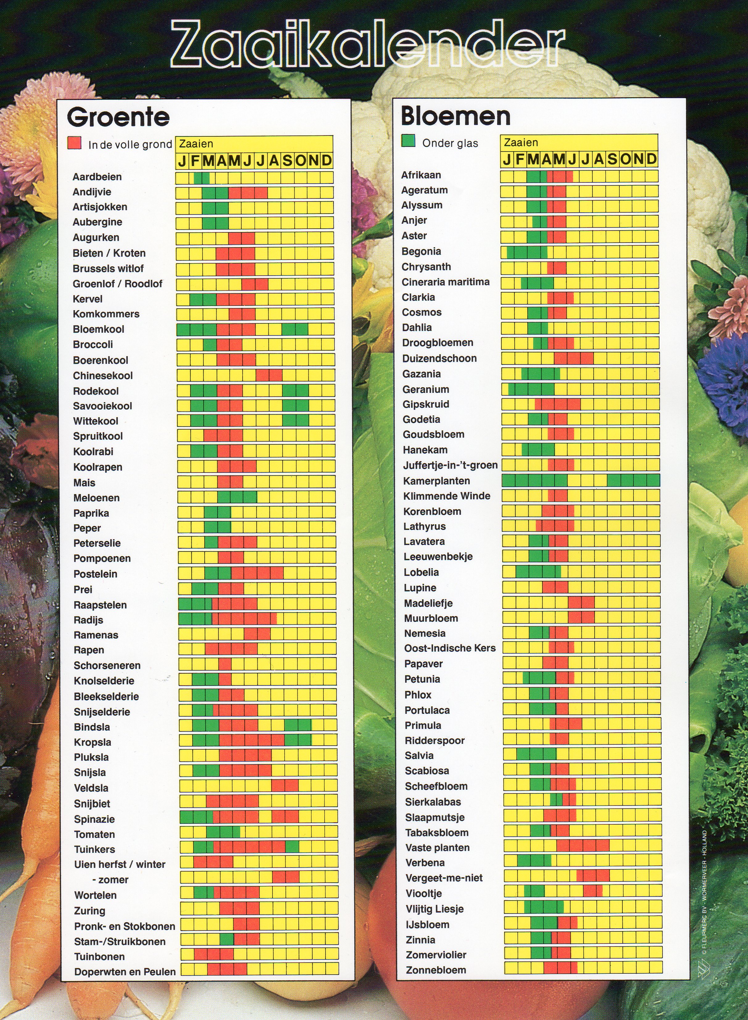 Zaaikalender, hieronder vindt u een gemakkelijk overzicht per gewas en wanneer u kunt zaaien binnen en buiten.